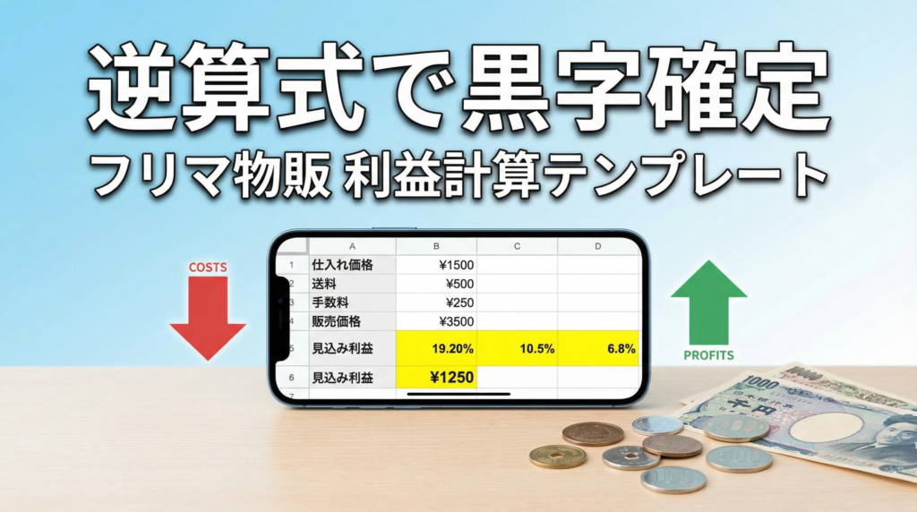 フリマ物販の利益計算テンプレート|逆算式で仕入れ前に黒字を確定する方法 フリマで商品が売れた。通知が来て嬉しくなった。でも振込金額を見て「あれ、思ったより少ない…