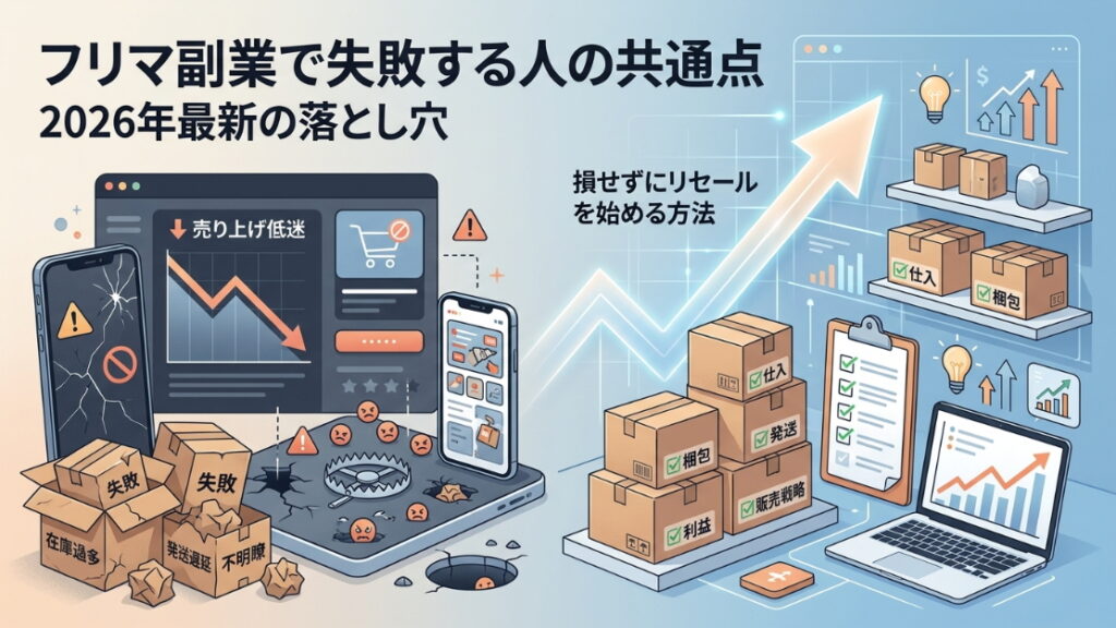 フリマ物販の副業で失敗する人の共通点|最新の落とし穴と”負けない物販”の始め方 「副業で月5万でいいから稼ぎたい」——そう思ってフリマ物…